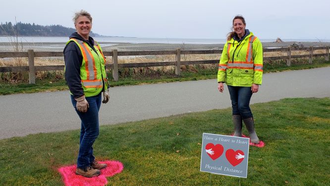 Missing those heart-to-heart talks with friends? Missing social connection?The Parksville Community Park remains open for people to get fresh air and just be outside and we hope to be able to keep the park open to residents; however, you must practice physical distancing. Yesterday, our operations department painted hearts in the Community Park to indicate the correct distance you need to keep between each other when having a heart-to-heart talk.